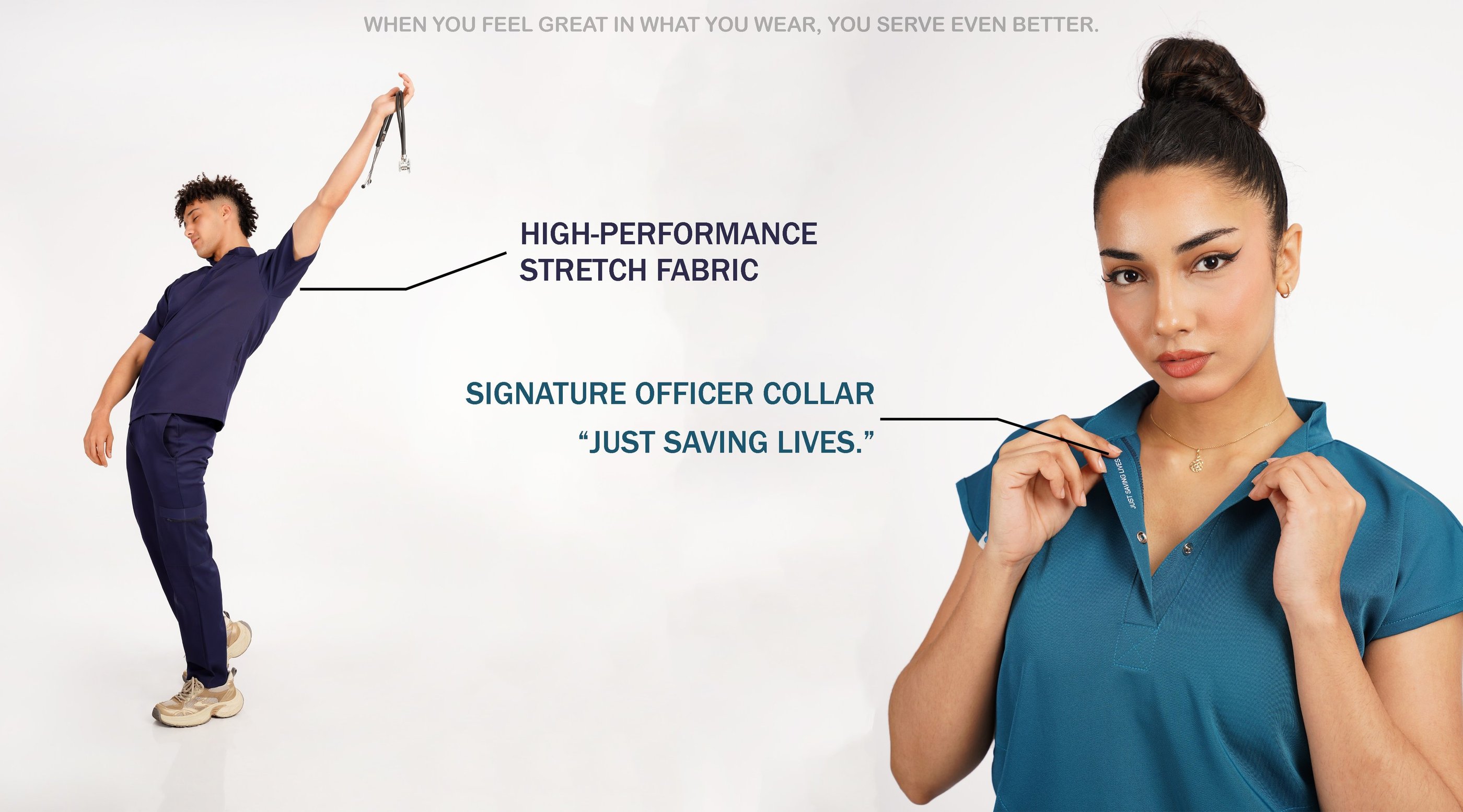 Chaque mouvement raconte une histoire. Découvrez comment nos tenues médicales améliorent la confiance et le confort, conçues pour celles qui osent être d'élite.